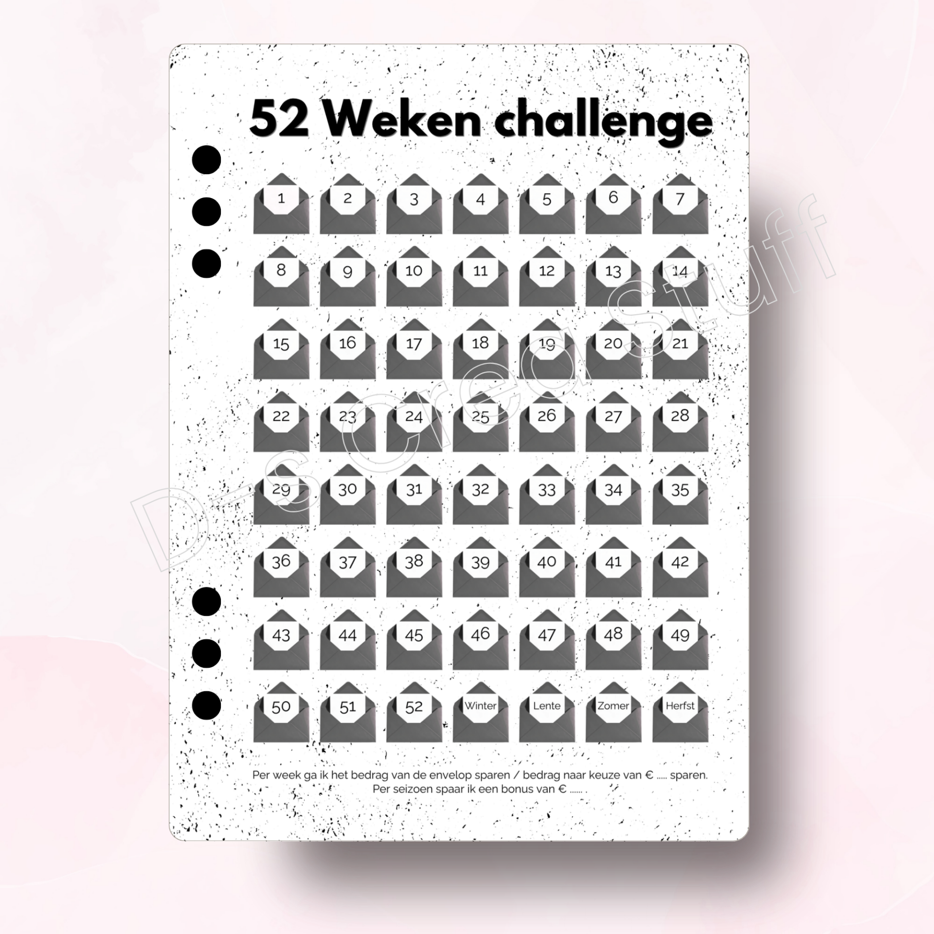 Deze challenge is A5 formaat, gelamineerd en geperforeerd.